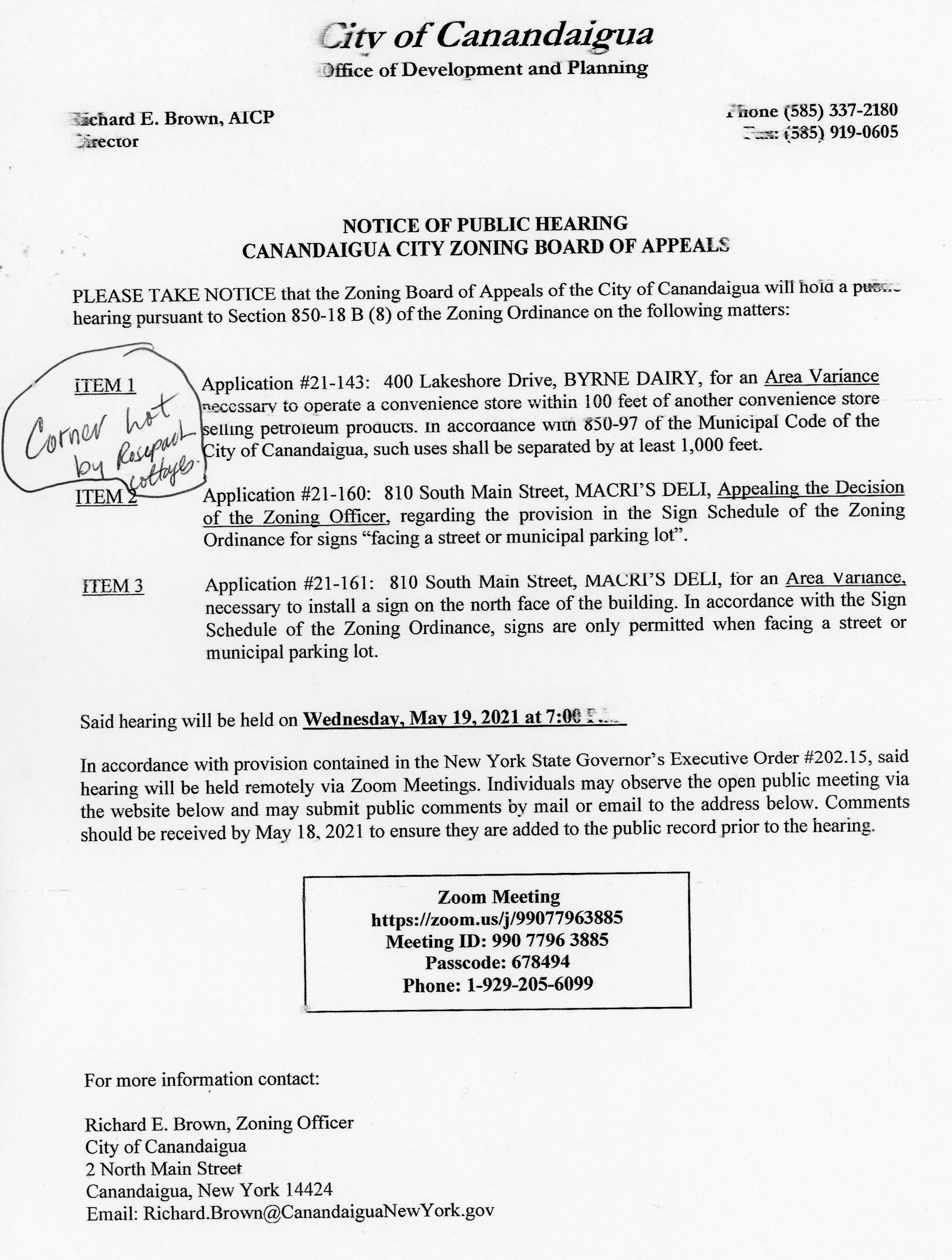 Lakeshore Drive Zoning Variance hearing May 19, 2021.